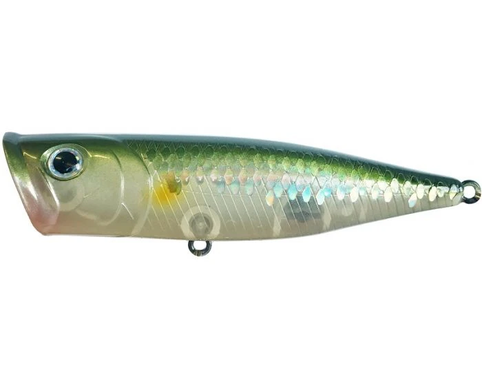This  topwater lure is designed to mimic shad whether they are fleeing or skipping across the top on their own. With its unique actions and characteristics, the G-Splash produces several efficient, fish-catching techniques. The cup of the lip gives the G-Splash the ability to throw water out in front while being fished really fast. This topwater plug is not intended to ‘walk the dog’ like other Lucky Craft topwaters such as the Sammy and the Gunfish. Rather it should be popped down, similar to a jerkbait action, but not as long. Create a pop, pop action while twitching the rod straight down so that it makes the water spray out in front of the bait. The extra large cup of the G-Splash makes an incredible splash that is able to call a monster fish up from deep water – keep up a constant twitch-and-pause action during the retrieve.